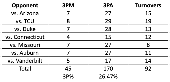 Two things stuck out: their opponents forced them into shooting a lot of threes and they turned them over a ton.