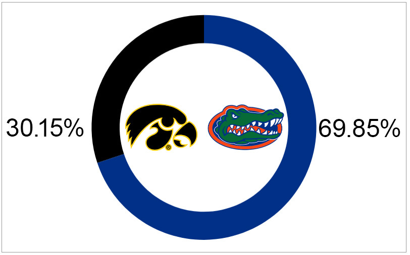 Taking the average from KenPom, Barttorvik, and Haslametrics the projected final score for Sunday’s game is: Florida 77- Iowa 69.