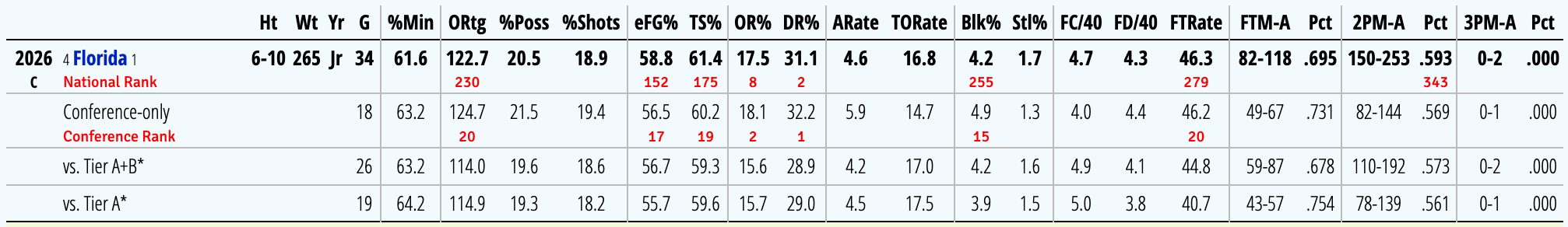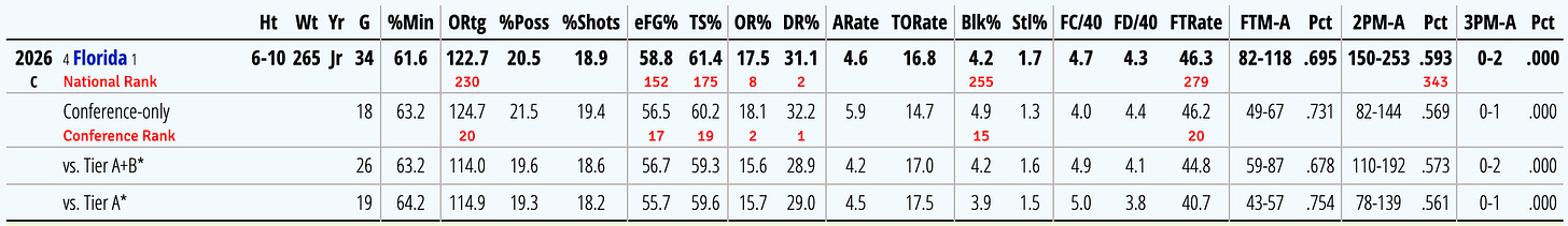 Xaivian Lee is the main guard for Florida and is the one assisting all of their big men. He does have the seventh highest assist rate in the SEC, but he is someone Iowa needs to have shoot the ball a lot from distance in this game.
